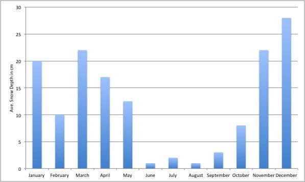 The chart below shows average snowfall in cm on the summit of Kilimanjaro